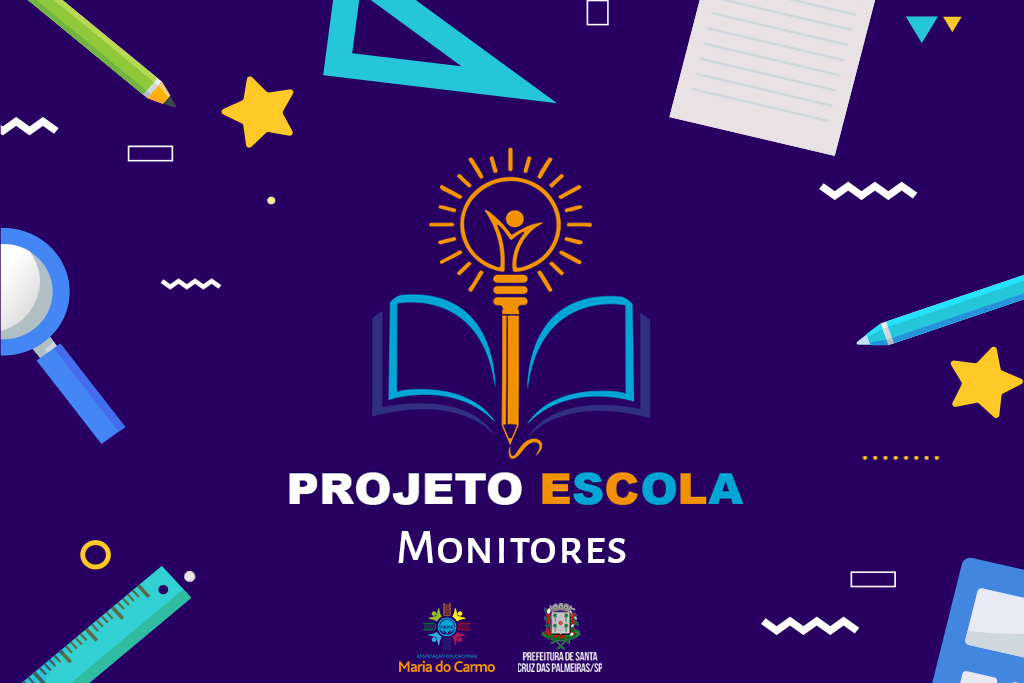 Fruto de uma parceria entre a AEMC – Associação Educacional Maria do Carmo e a Prefeitura de Santa Cruz das Palmeiras, o PROJETO ESCOLA: Monitores realiza o atendimento educacional para crianças de 3 (três) a 15 (quinze) anos de idade – matriculadas na Educação Infantil e Fundamental da região. Portanto, este projeto existe para garantir a qualidade da Educação na Rede Municipal de Ensino.